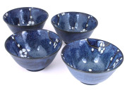Dark Blue Cherry Blossom Rice Bowl Set for Four