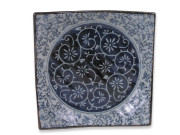 Rustic Dark Green, Blue and Cream Karakusa Japanese Square Plate