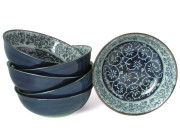 Rustic Dark Green, Blue and Cream Karakusa Dessert Bowl Set for Six