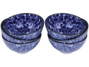 Delicate White and Blue Snow Blossom Japanese Karakusa Rice Bowl Set for Six