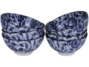 Classic Blue and White Peony Porcelain Rice Bowl Set for Six