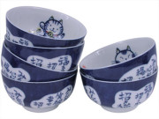 Cute Maneki Neko Lucky Rice Bowl Set for Six