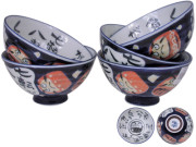 Lucky Japanese Daruma Rice Bowls Set for Five
