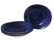 Dark Blue and White Moonflower Asian Inspired Plates Set of Four