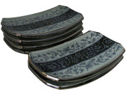 Rustic Dark Green, Blue and Cream Karakusa Japanese Sushi Plates Set for Six