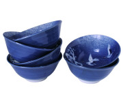 White Cranes in Flight Blue Waves Japanese Crane Rice Bowls Set for Six
