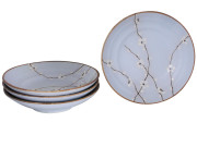9 Inch Cherry Blossom on Blue Japanese Shallow Bowl Set for Four