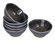 Pale Blue and Earthen Crackled Sand Soy Sauce Dish Set for Six