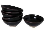 Earthen Black and Brown Japanese Rice Bowl Set for Six