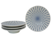 7-3/4 Inch Blue and White Starburst Japanese Plate Set for Four