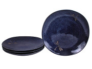 9-3/4 Inch Blue Dragonfly Ceramic Square Plate for Four
