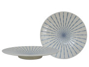11-7/8 Inch Blue and White Starburst Japanese Plate Set of Two