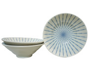 9-1/2 Inch Blue and White Starburst Japanese Bowl Set of Three