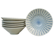 8 Inch Blue and White Starburst Ramen Bowl Set for Six