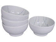 6-3/4 Inch Minimalist White Cherry Blossom Japanese Noodle Bowl Set for Four