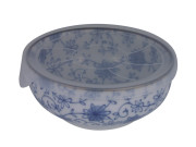 4-1/4 Inch Blue and White Flower Japanese Ceramic Bowl with Cover