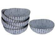 6-1/2 Inch Blue and White Wabi-Sabi Cereal Bowls of Six