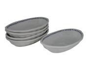 Tokusa Blue and White Oval Shaped Japanese Ceramic Bowls for Five