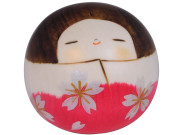 Adorable Pink Blossom Chirimen Fabric Japanese Wooden Doll (LAST ONE)