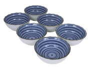 Blue and White Modern Spiral Asian Sauce Bowls Set for Six