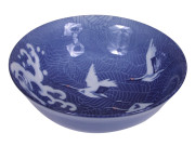 White Cranes in Flight Blue Waves Japanese Noodle Bowl