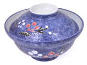 Blue Plum Blossom on Off White Traditional Sake Set for Four