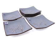 Cherry Blossom On Blue Square Dish – Set of Six