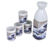 Blue Plum Blossom on Off White Traditional Sake Set for Four
