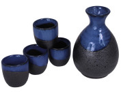 Blended Shades Matte Black and Shiny Blue Japanese Sake Set for Four