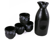 Night Cherry Blossoms Viewing Matt Black Sake Set for Four