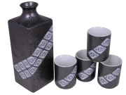 Metallic Grey with Black Speckle Chrysanthemum Japanese Saki Set for Four