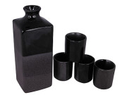 Metallic Grey with Black Speckle Chrysanthemum Japanese Saki Set for Four