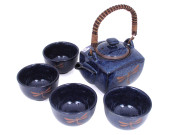 Metallic Grey with Black Speckle Chrysanthemum Japanese Saki Set for Four