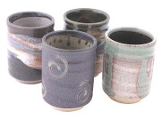 Metallic Grey with Black Speckle Chrysanthemum Japanese Saki Set for Four
