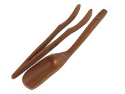 Lacquered Wooden Long handle Tea Spoon and Tea Tongs Set