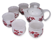 Cheery Red Calligraphy Chinese Teapot Set for Four
