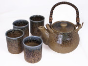 Pale Blue and Earthen Crackled Sand Japanese Tea Set for Four