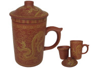 Golden Dragon Yixing Tea Mug with Strainer and Lid (Reddish Brown)